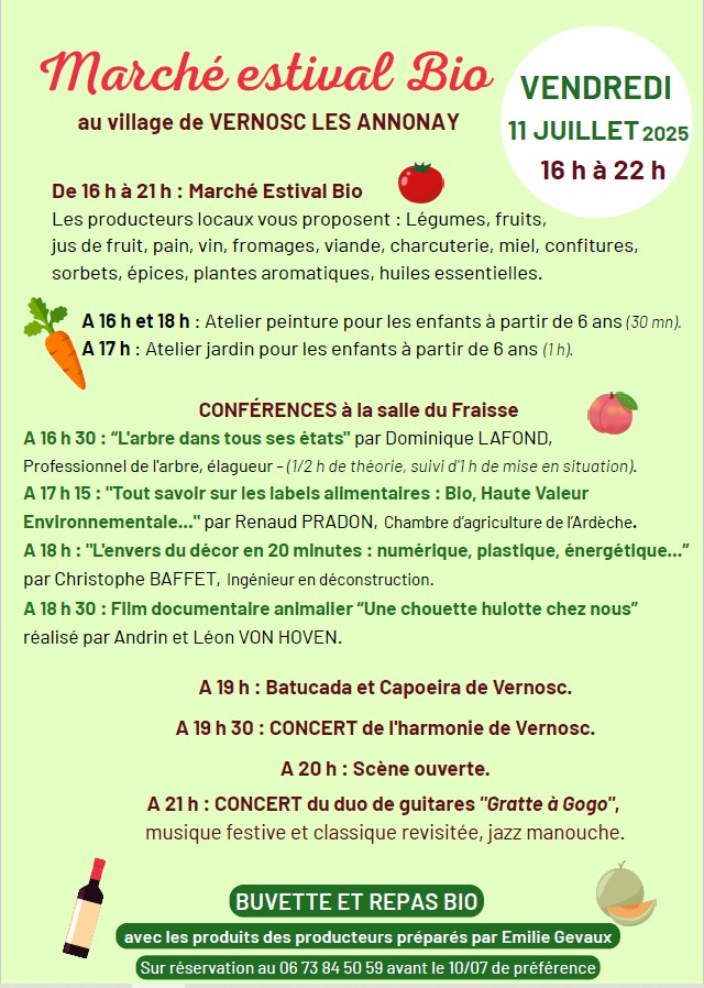 Je serai heureux de vous accueillir sur mon stand, de ce 2ème marché estival BIO.